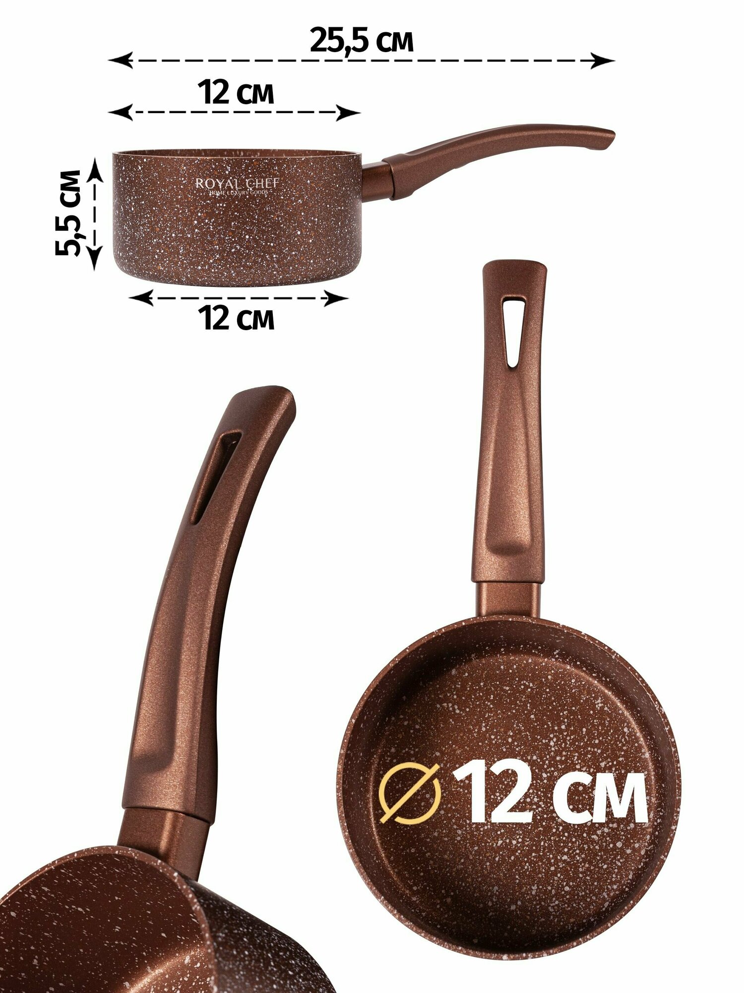 Ковш с ручкой Royal Chef 12см/Мраморное антипригарное покрытие