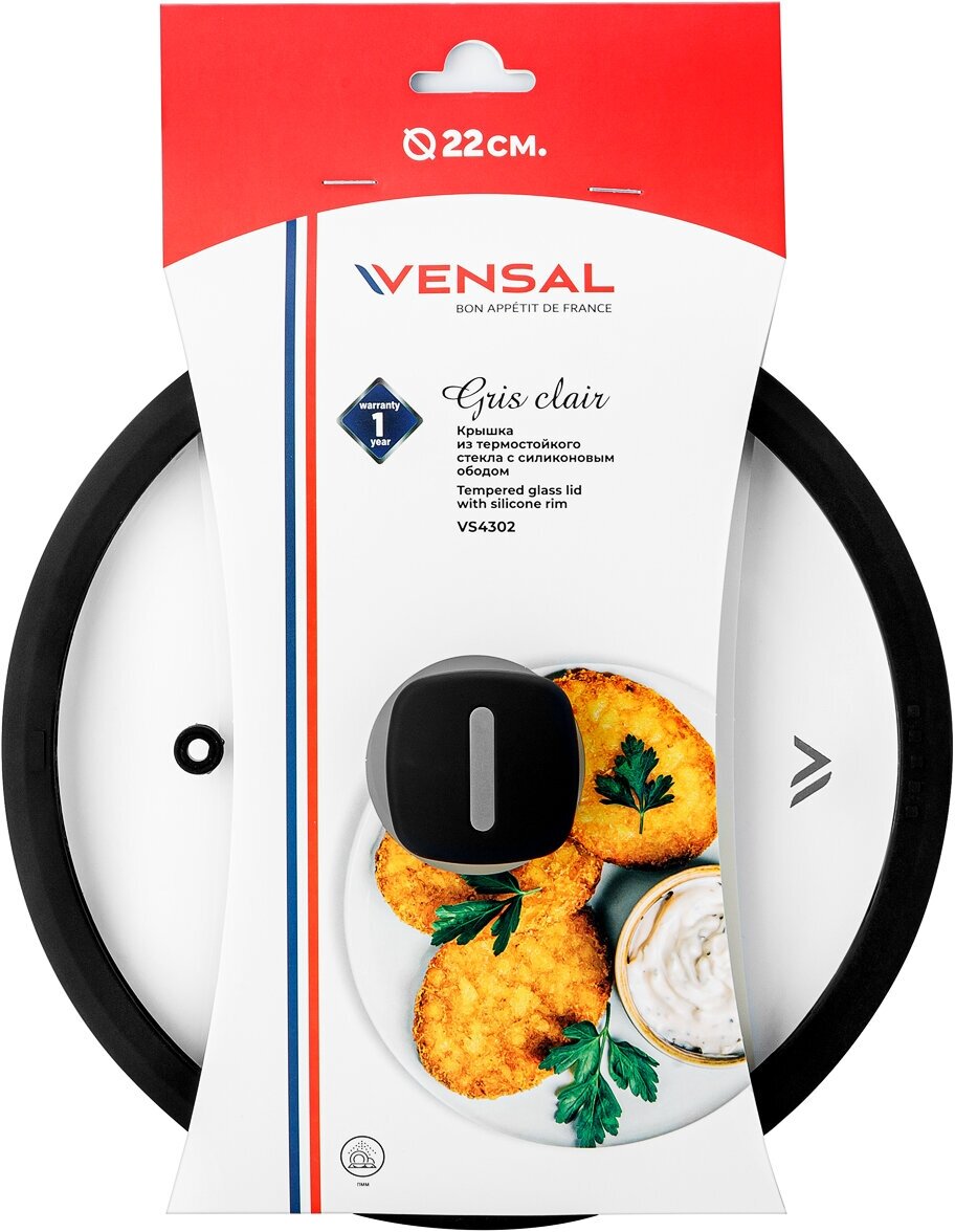 Крышка из термостойкого стекла с силиконовым ободом 22 см Gris clair VENSAL VS4302 информация: