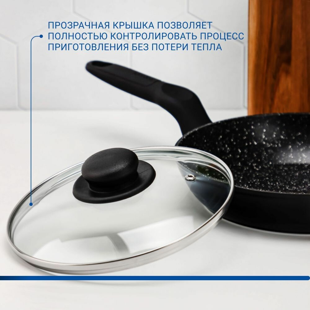 Стеклянная крышка Pomi d'Oro RUS-540005, крышка для сковороды, крышка 28 см, кухонная крышка, крышка для посуды