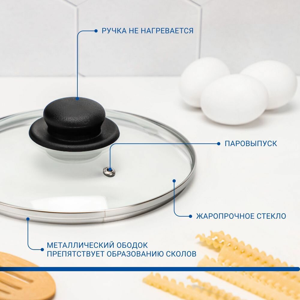 Крышка для сковороды и кастрюли 20 см с паровыпуском, металлический ободок информация: