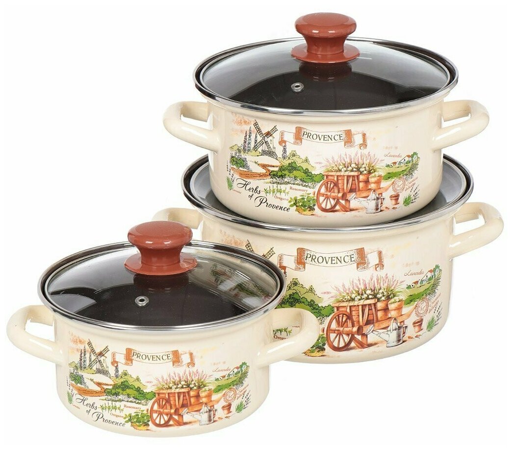 10 цен на Набор эмалированных кастрюль "Травы прованса экстра" 3шт (1,5л/2,3л/3л)+ 3 крышки, Керчь