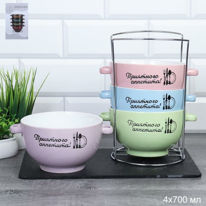 10 цен на Супница с ручками 4 штуки на подставке глубокие