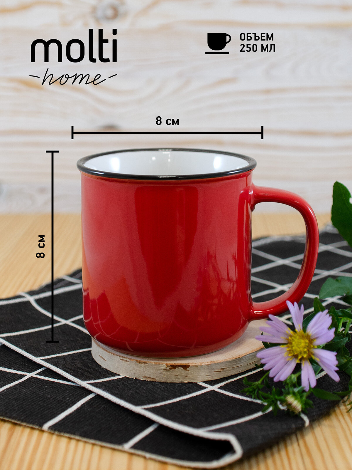 Кружка для чая и кофе глянцевая molti Dacha чашка подарочная 250 мл, красная информация: