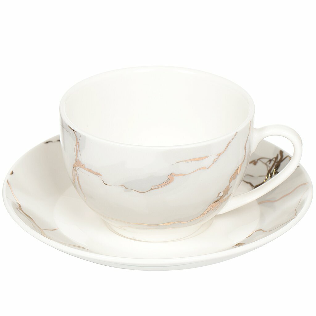 Чайная пара керамика, 2 предмета, на 1 персону, 250 мл, Daniks, Белый мрамор информация: