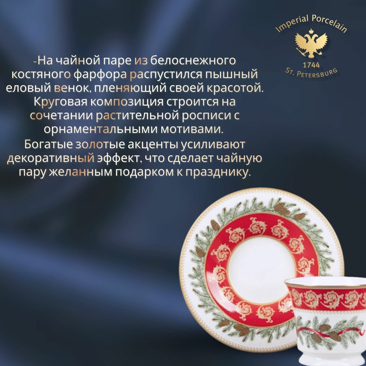 Чашка с блюдцем чайная 210 мл, форма "Юлия", рисунок "Рождественское чаепитие", костяной фарфор. Императорский фарфоровый завод ИФЗ информация: