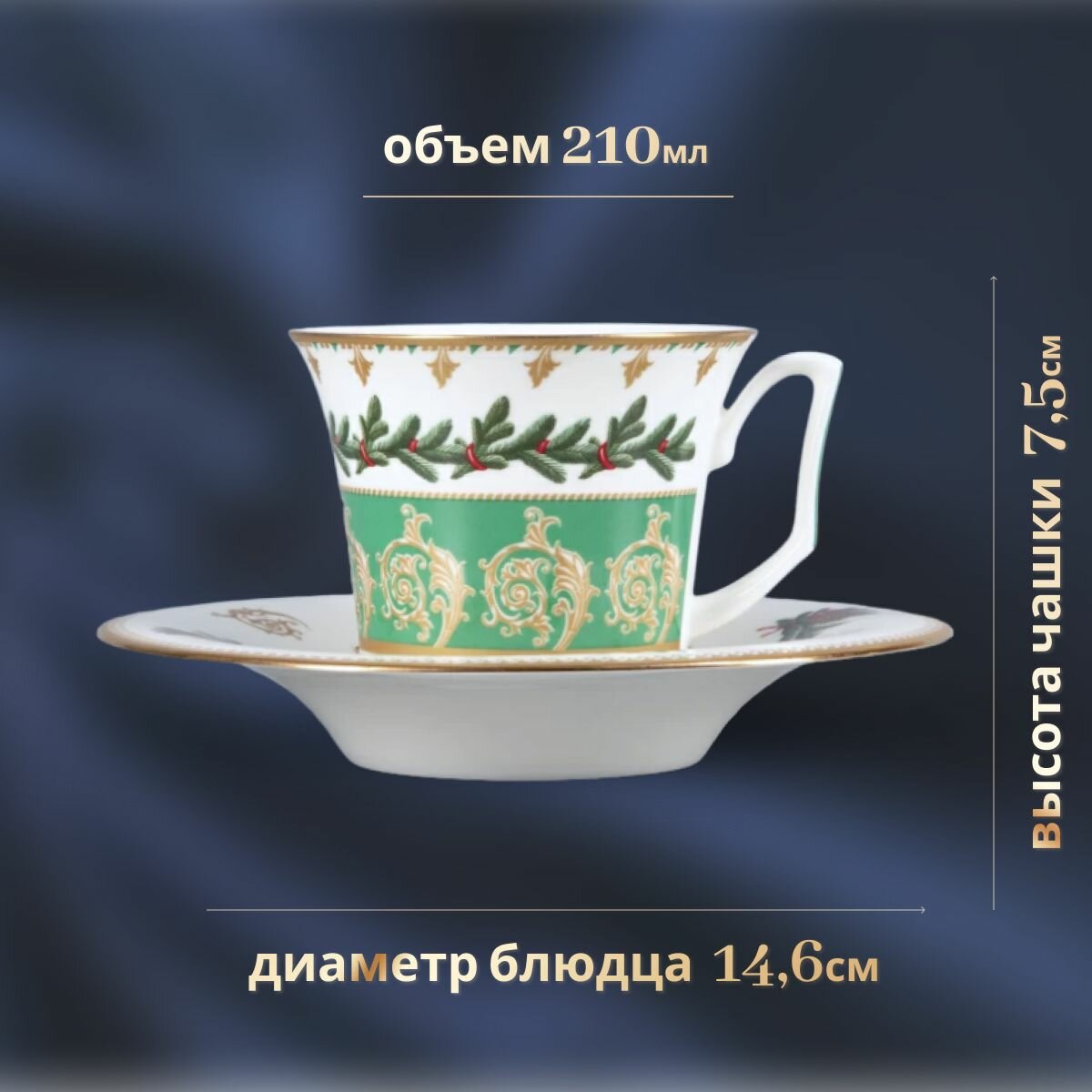 Чашка с блюдцем чайная 210 мл, форма "Юлия", рисунок "Еловые веточки" костяной фарфор. Императорский фарфоровый завод ИФЗ информация: