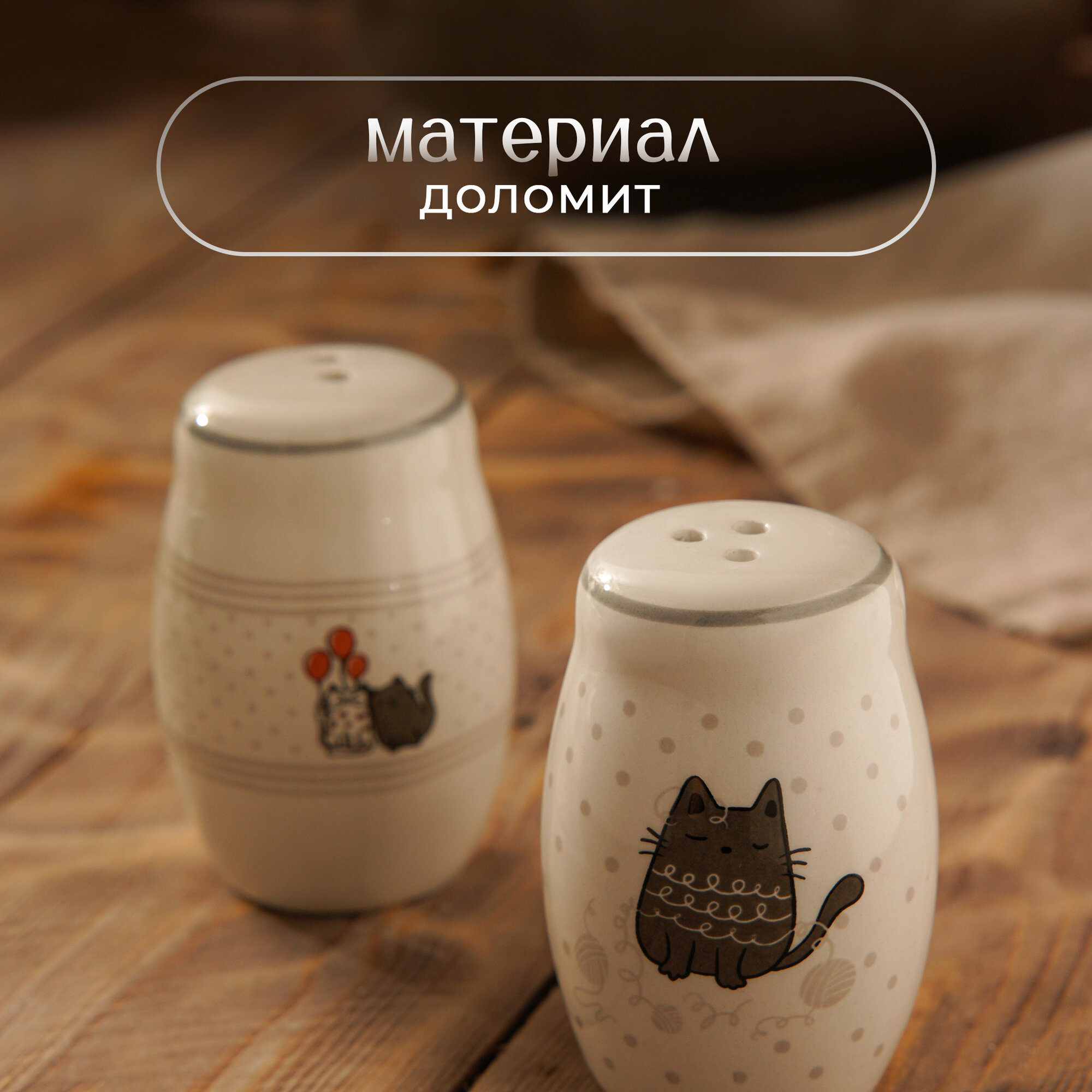 Набор для специй Доляна «Уютные коты», 2 предмета: солонка, перечница 80 мл информация: