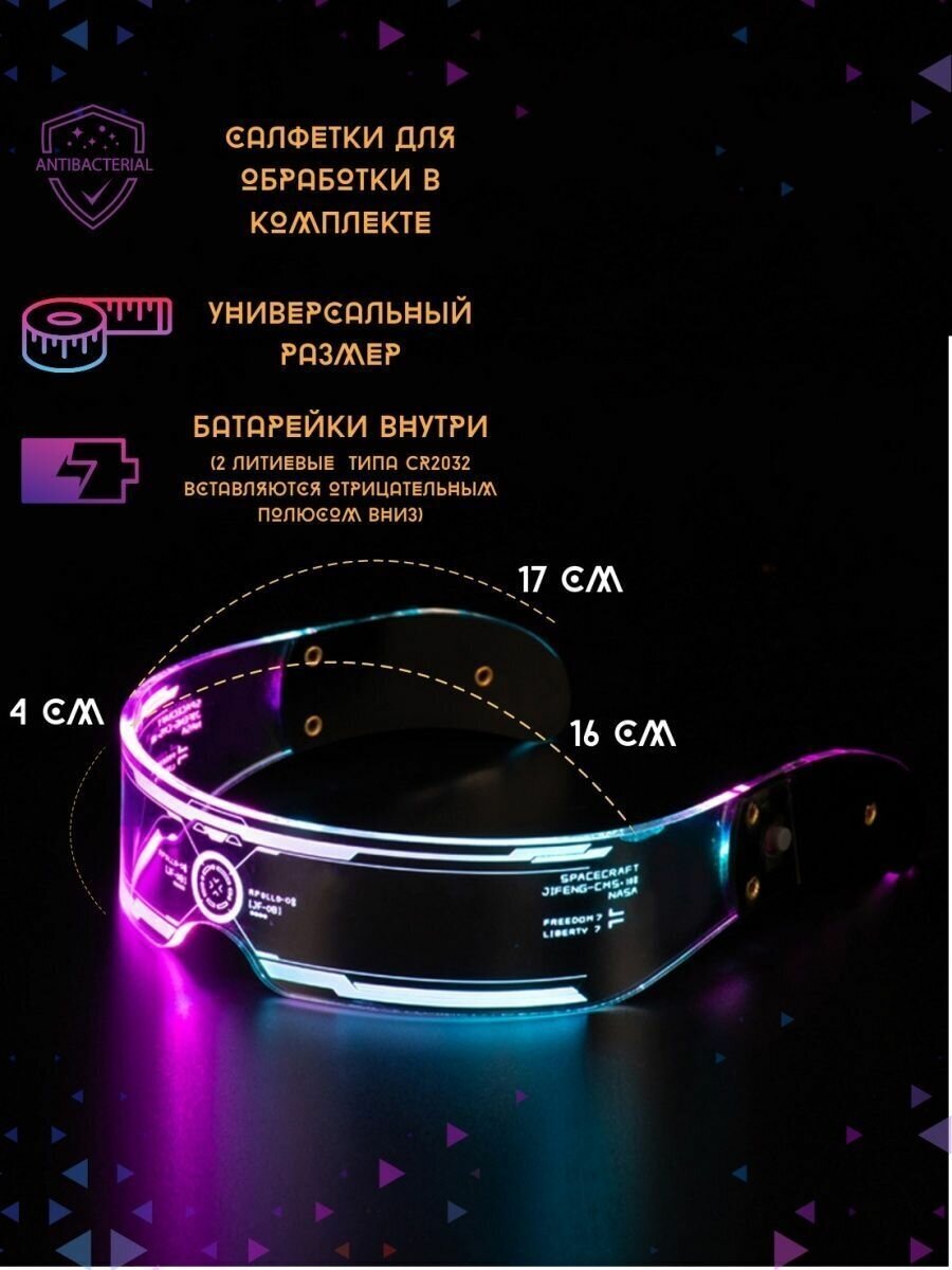 Светодиодные светящиеся киберпанк очки с неоновой подсветкой 550 ₽