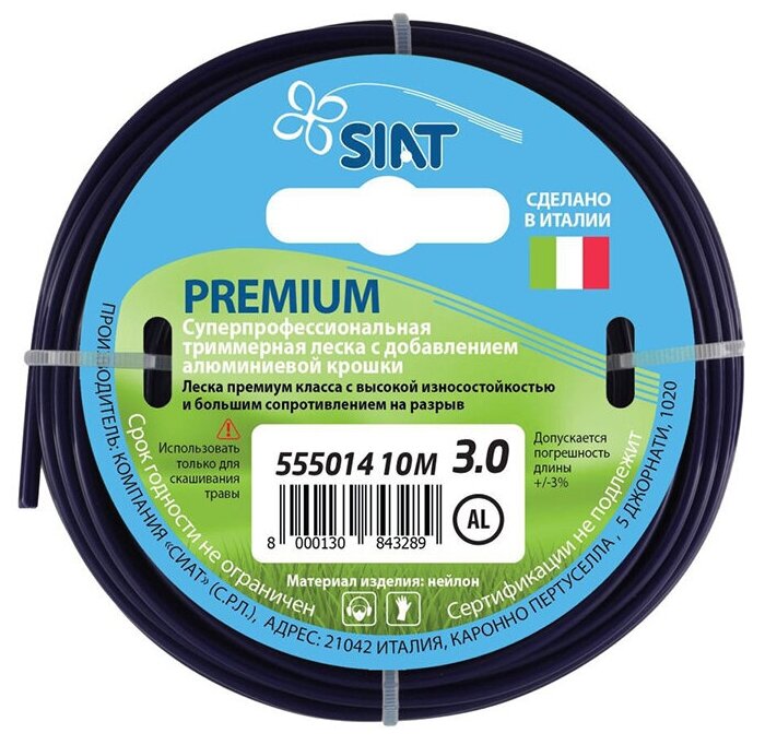 Леска для триммера Siat Premium алюминиум 3мм, 10м, звезда