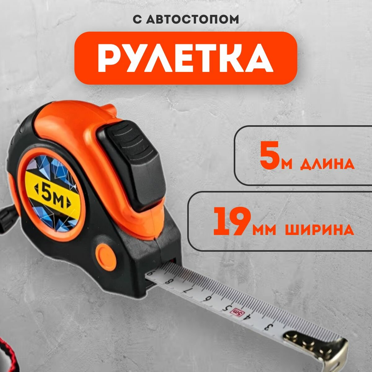 10 цен на Рулетка BAUHOW 5мx19мм обрезиненный корпус, с автостопом
