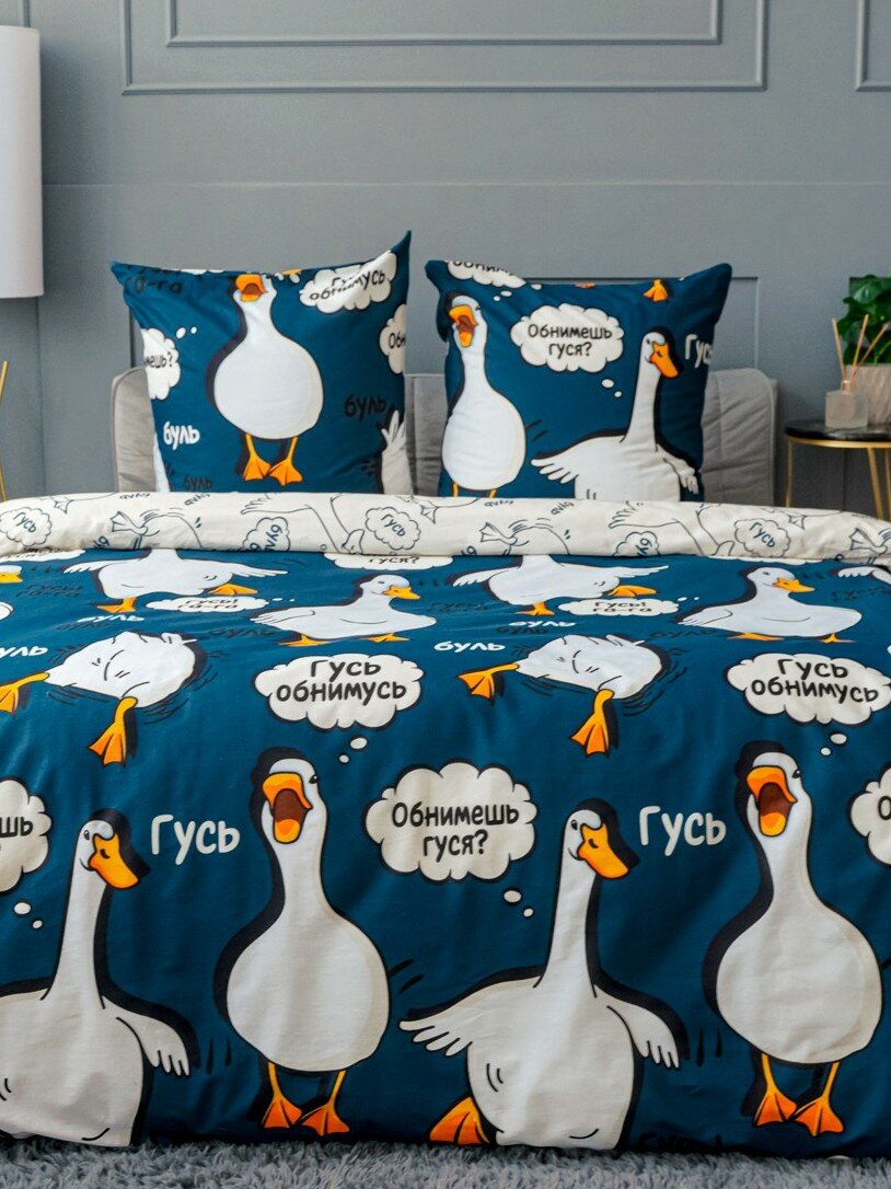 Отзывы на Постельное белье евро макси Павлинка "Гусь-обнимусь" синий, бязь 100% хлопок