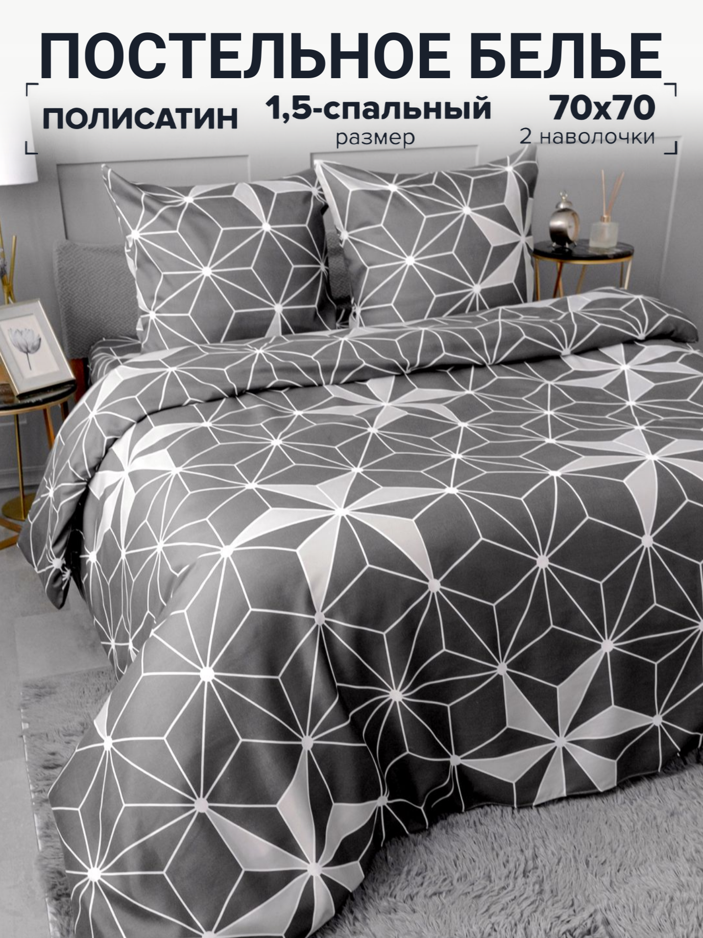 Отзывы на Постельное белье 1.5 спальное Павлина 255 Серый геометрия (9349-02), Полисатин, наволочки 70x70