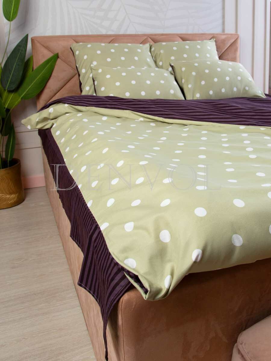 Комплект постельного белья Denvol 1.5 спальный-Сатин пододеяльник 150х215 на молнии, простыня на резинке 90х200(+25), 2 наволочки 70х70, зеленый, фиолетовый 3 450 ₽