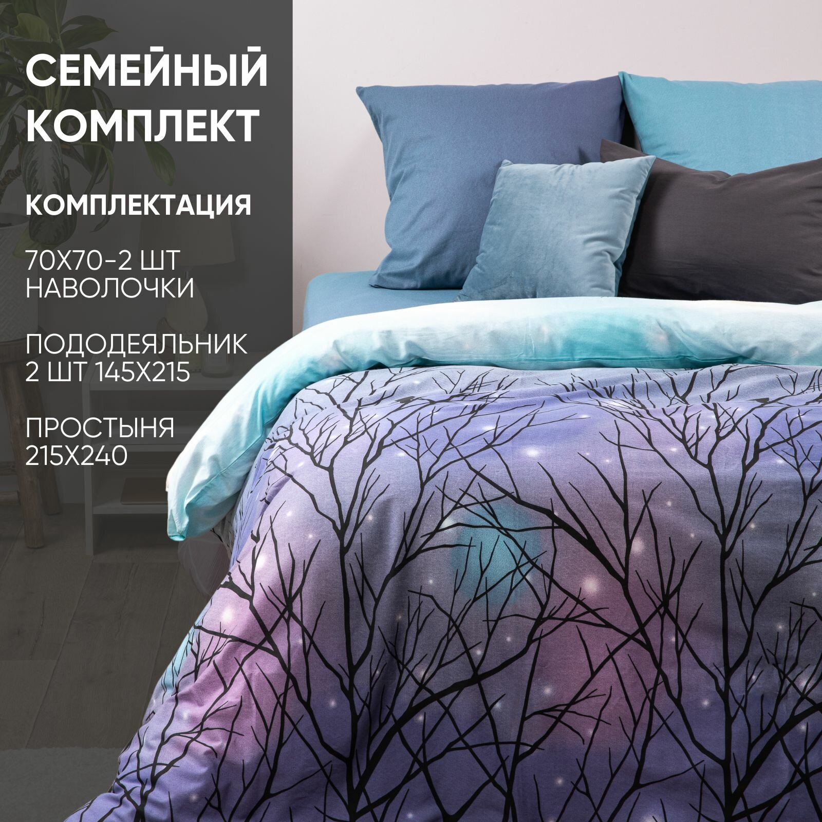 Постельное бельё/семейное/комплект/простынь 220х240/пододеяльник 145х215/наволочки 70х70/поплин/Черная птица/Ночь Нежна 4 890 ₽