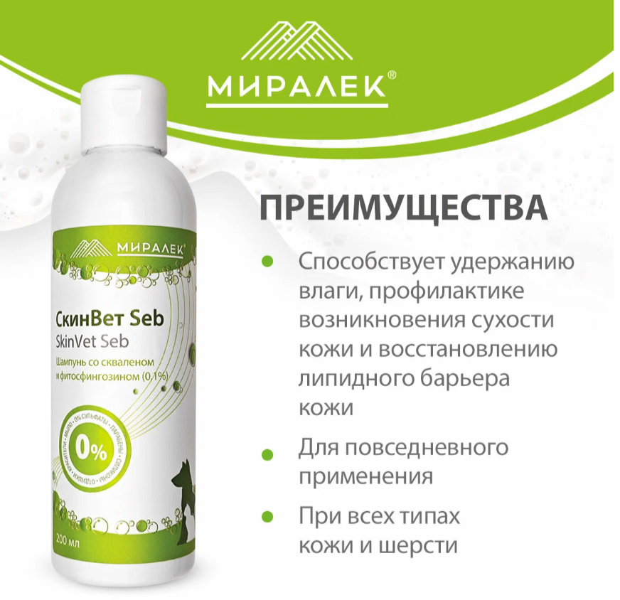 Шампунь для животных СкинВет Seb (со скваленом и фитосфингозином), 200 мл информация: