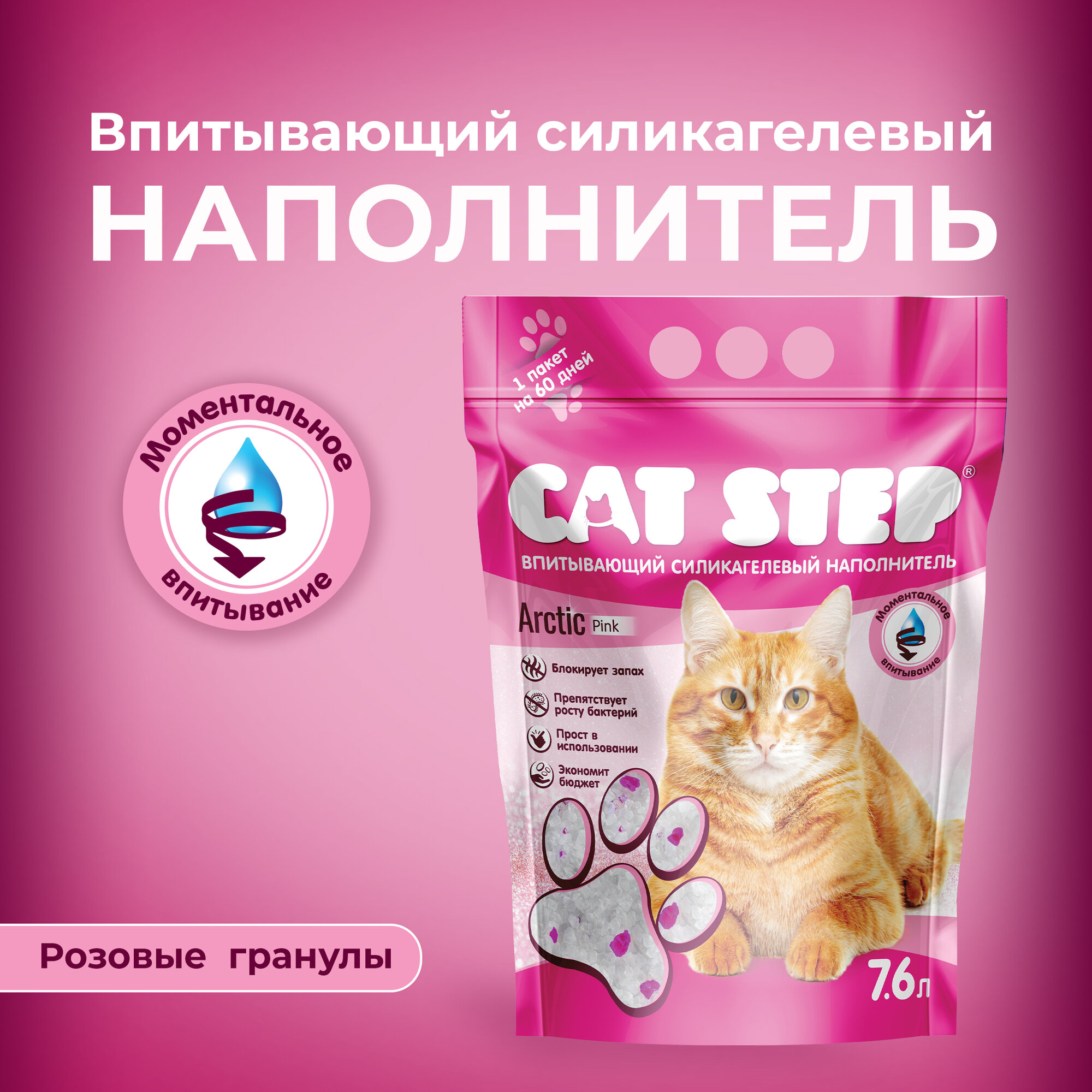 Наполнитель впитывающий силикагелевый CAT STEP Arctic Pink, 7,6 л информация: