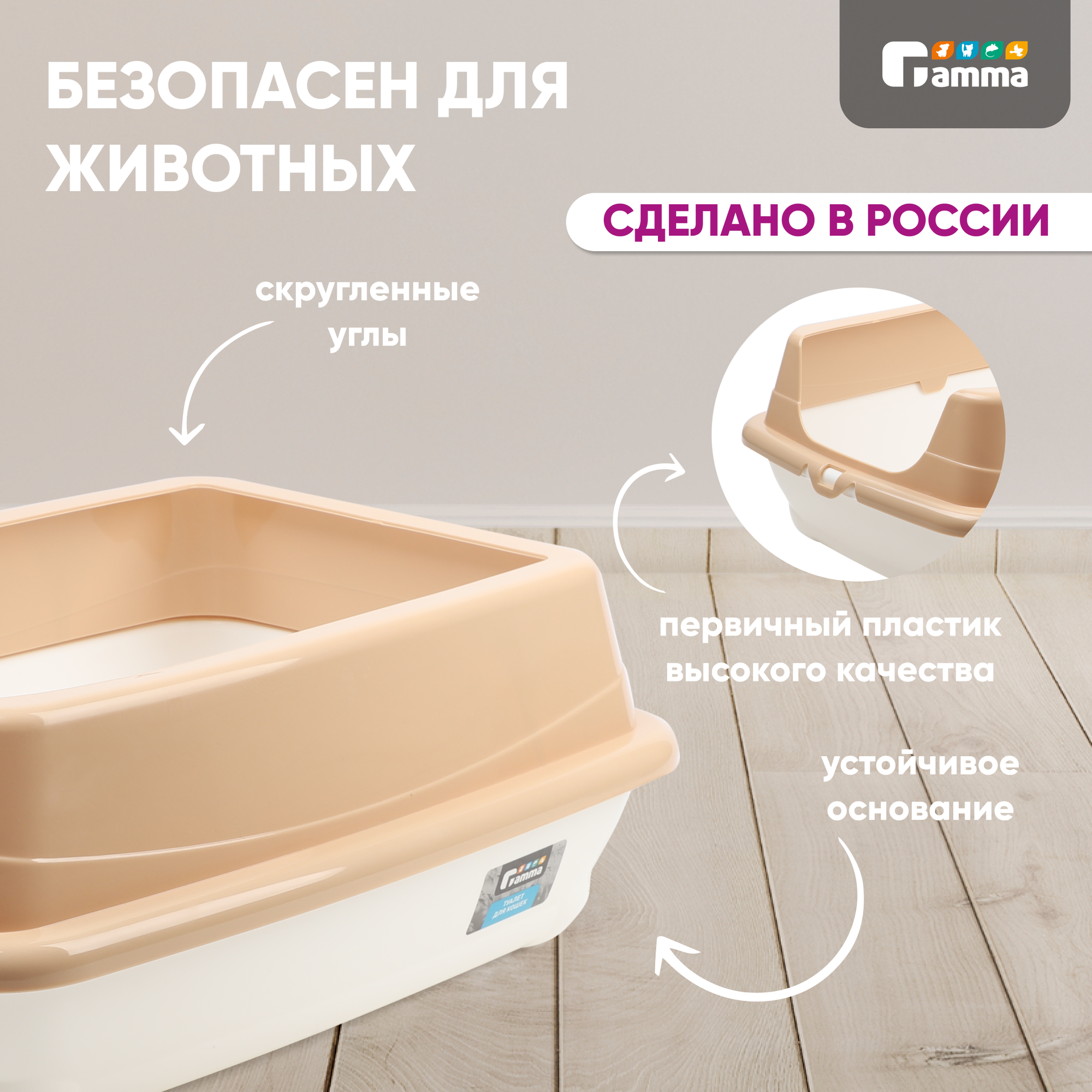 Туалет длЯ кошек гамма прямоугольный с высоким бортом пушок, белый/бежевый, 455*350*190мм, 20452021 (1 шт) информация: