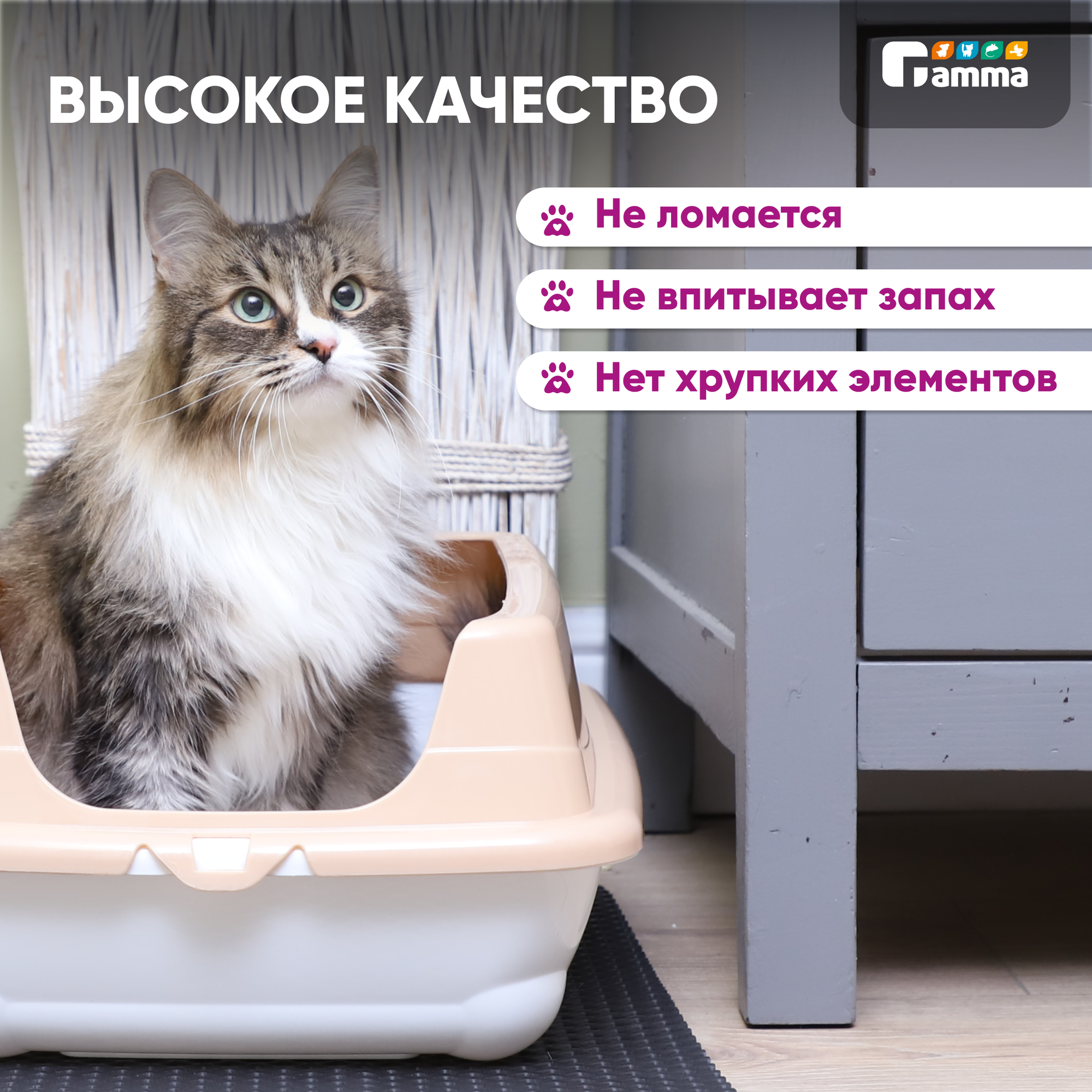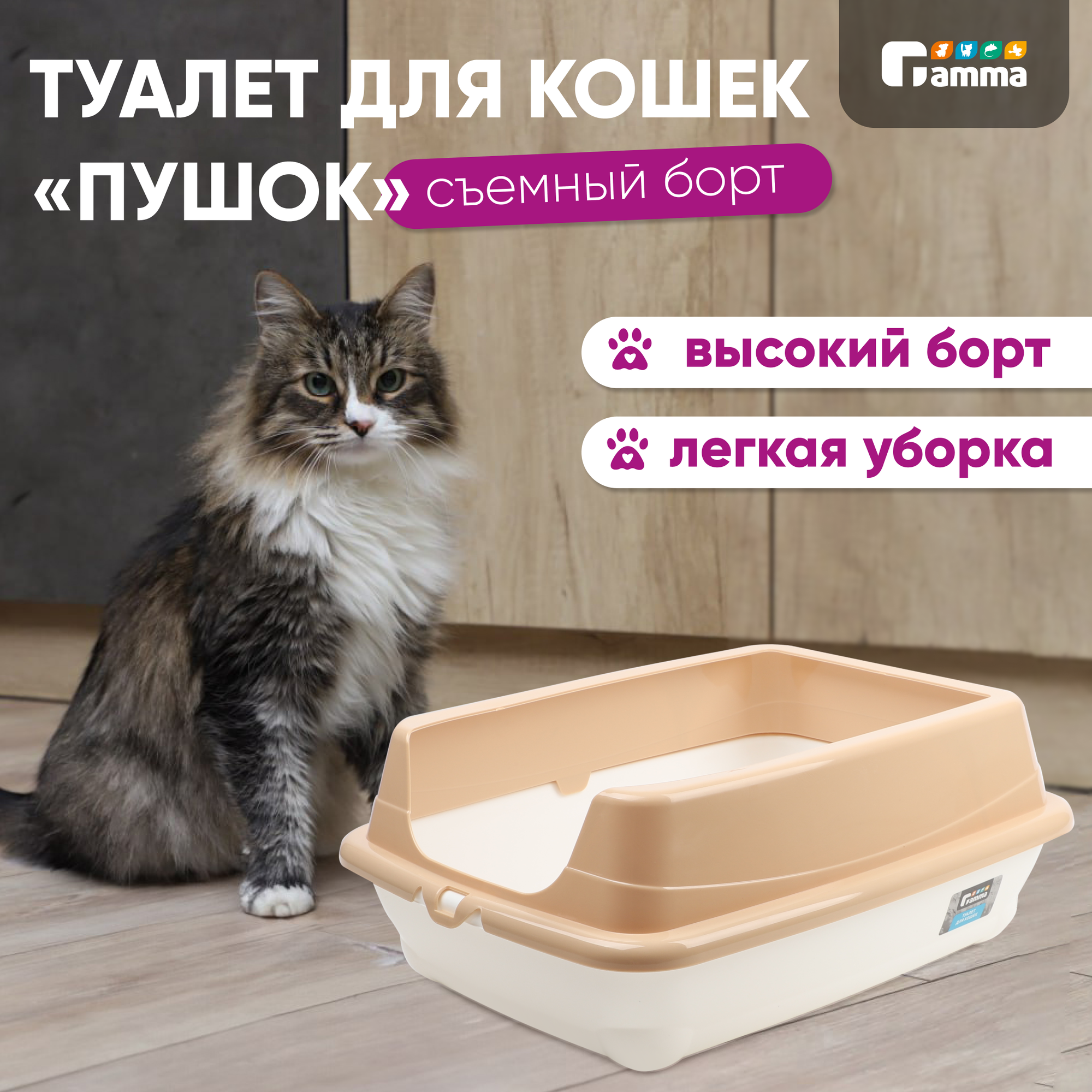Отзывы на Туалет длЯ кошек гамма прямоугольный с высоким бортом пушок, белый/бежевый, 455*350*190мм, 20452021 (1 шт)