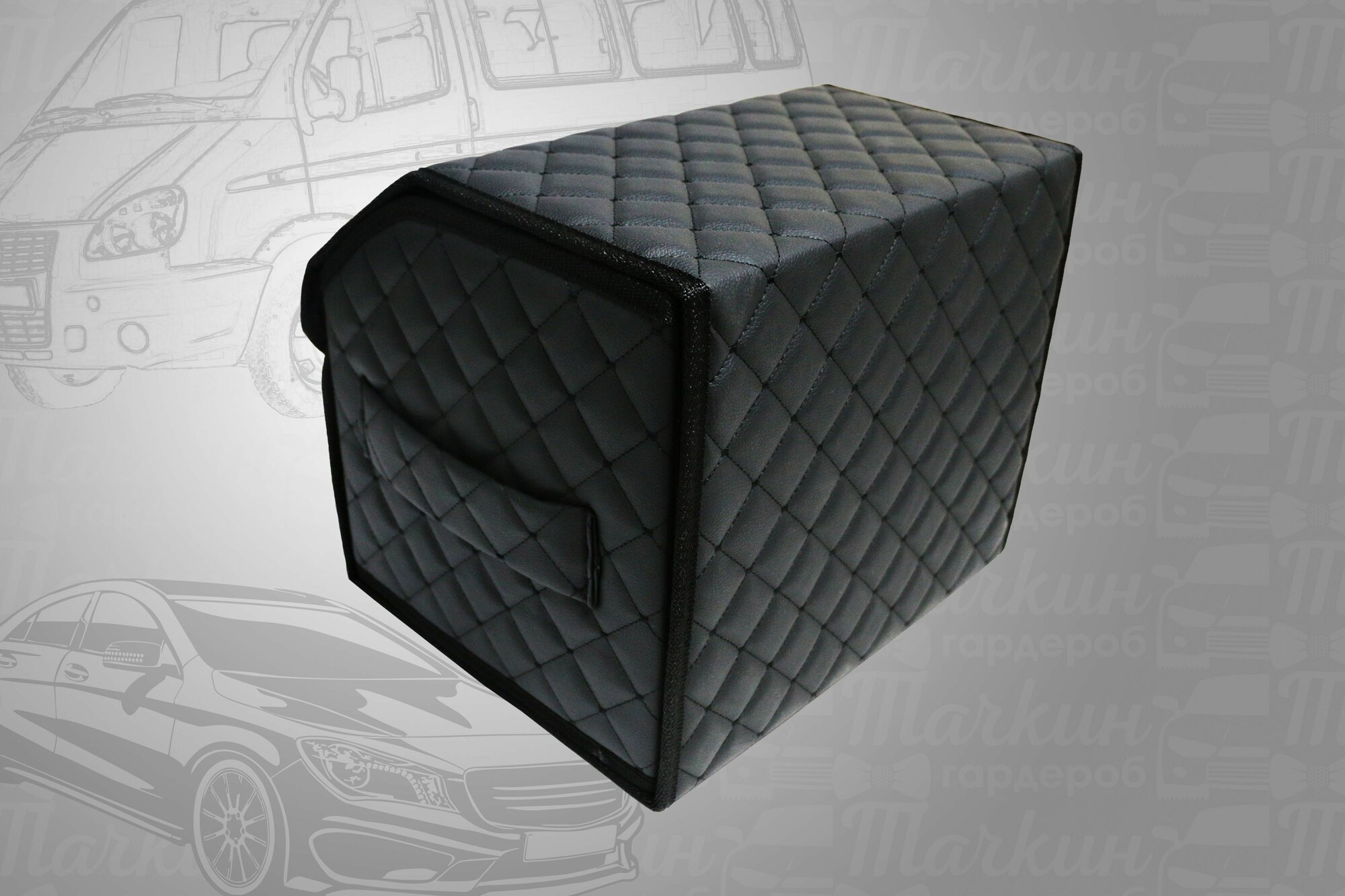Аксессуары для авто/Органайзер в багажник 50х30х30 рисунок фигурный ромб черный строчка черная