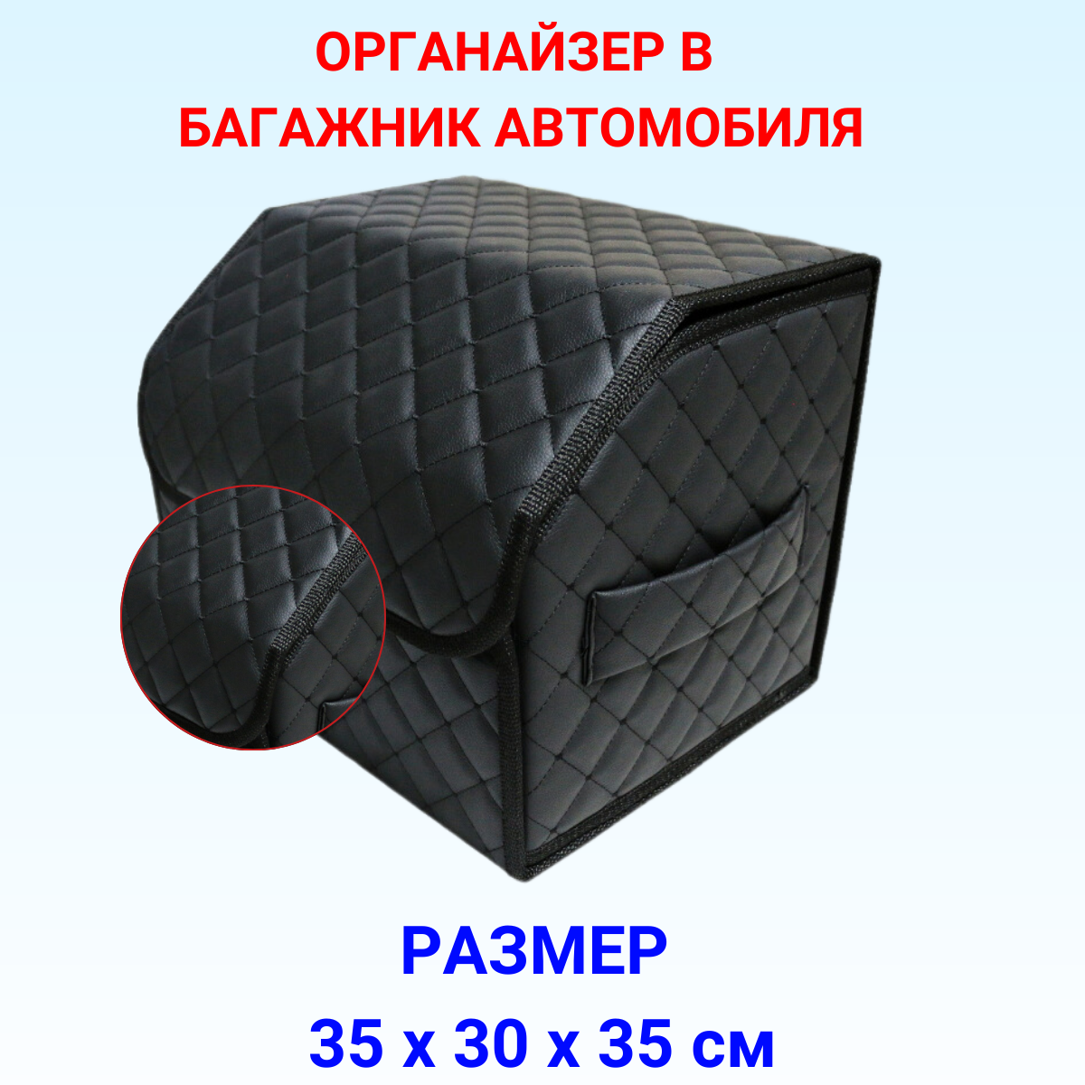 10 цен на Высокий Саквояж из экокожи в багажник авто премиум-класса/ Органайзер 35*30*35 сложный квадрат черный/черн