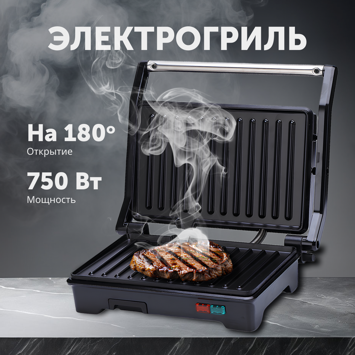 Электрический мини-гриль с режимом барбекю и антипригарным покрытием, 750 Вт, черный информация: