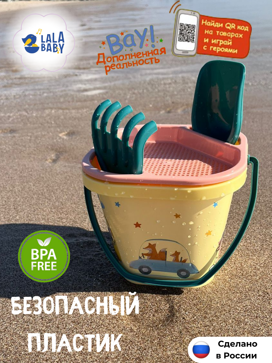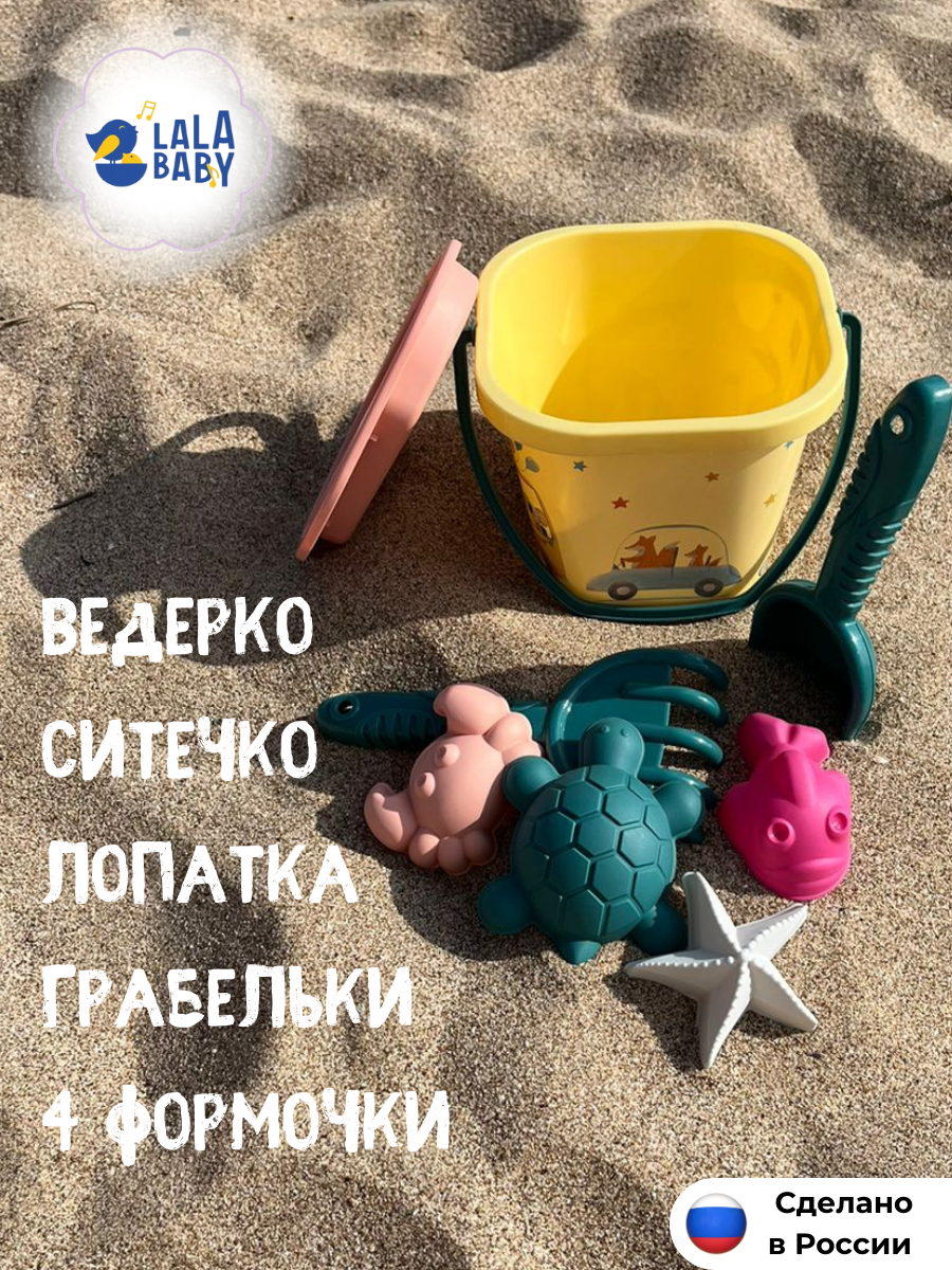 Песочный набор. Ведерко, сито, совочек, грабельки, 4 формочки LA115512573 Lalababy 9610325 1 257 ₽