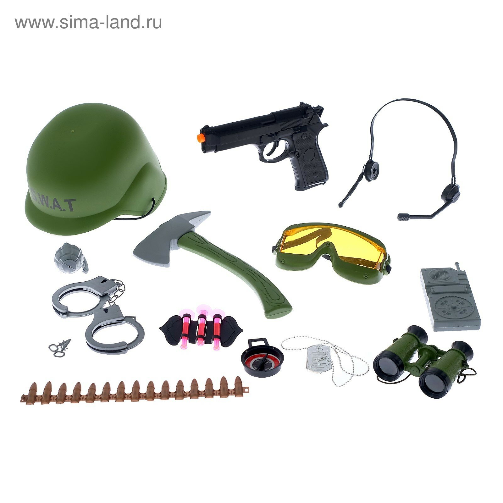| В комплекте | бинокль, граната, наручники, оружие, рация |
