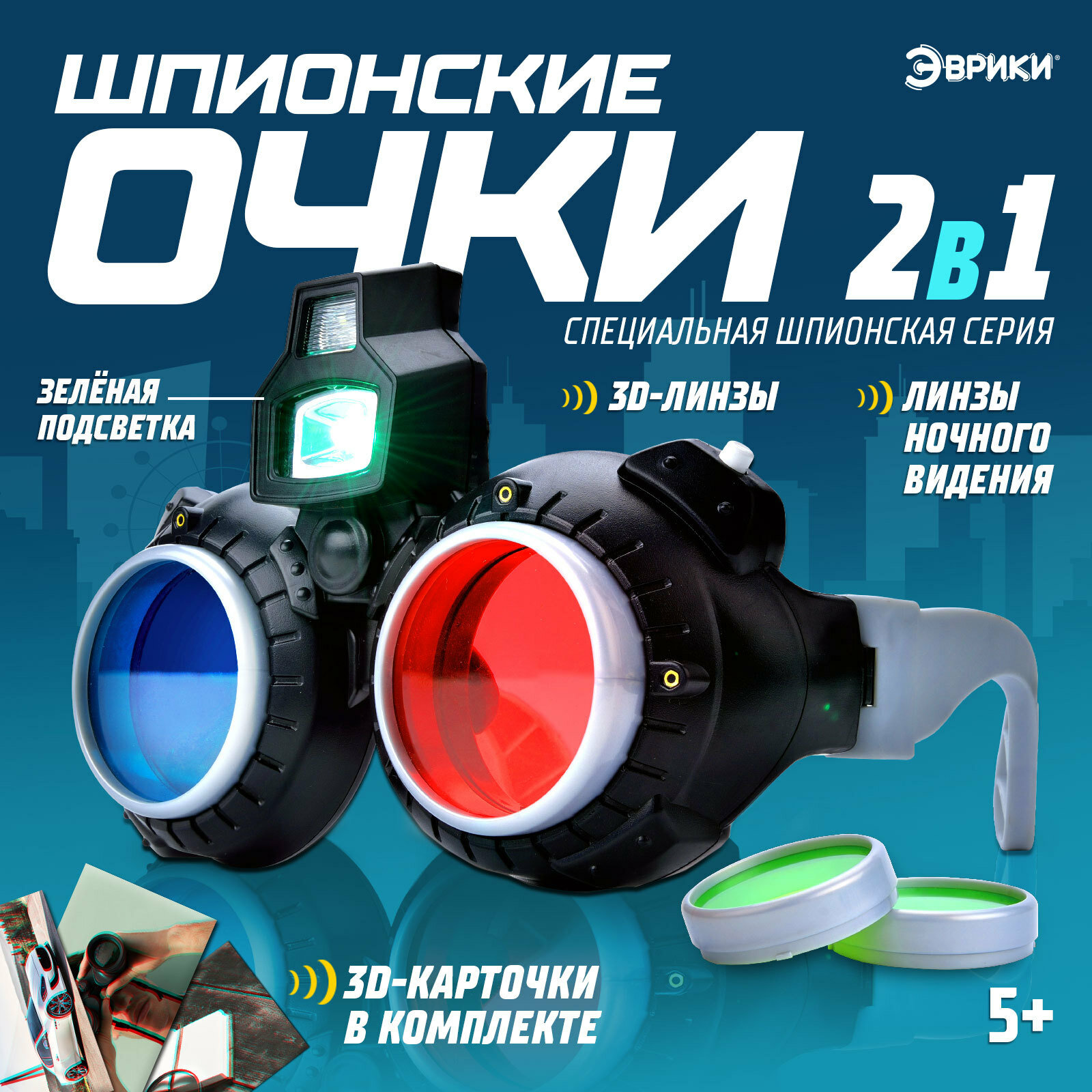 10 цен на Очки ночного видения 2 в 1 «Шпионы», с 3D-карточками и подсветкой