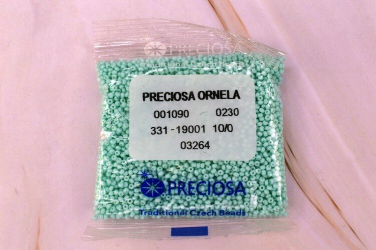 10 цен на Бисер чешский PRECIOSA круглый 10/0 03264 бирюзовый непрозрачный, 1 сорт, 50г