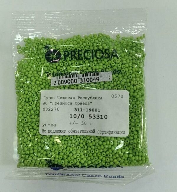 Чешский бисер Preciosa 10/0 (2,3мм) арт. NO цвет 53310 - Зеленый / 311-19001 уп. 50г информация: