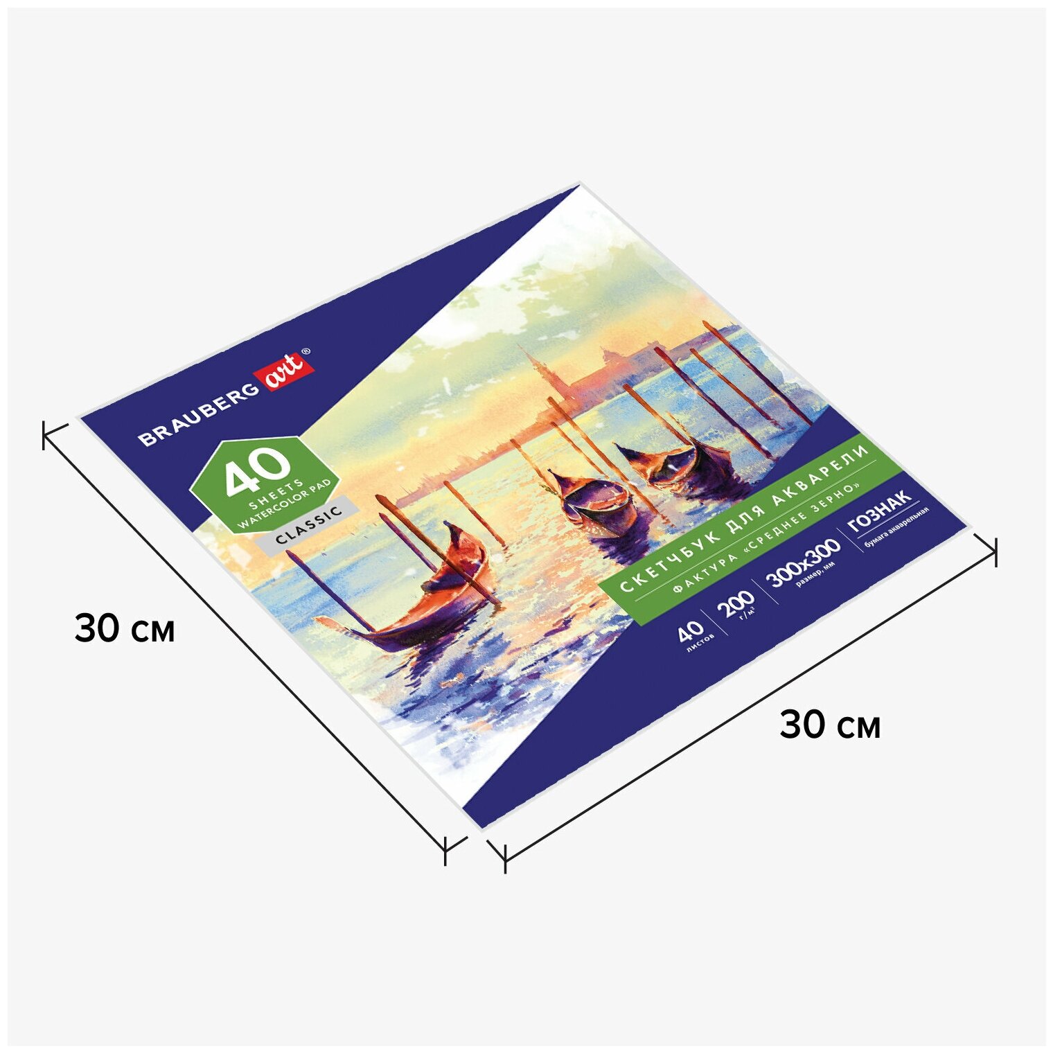 Альбом для акварели, бумага гознак СПб 200 г/м2, 300x300 мм, 40 л., склейка, BRAUBERG ART, 106143 информация: