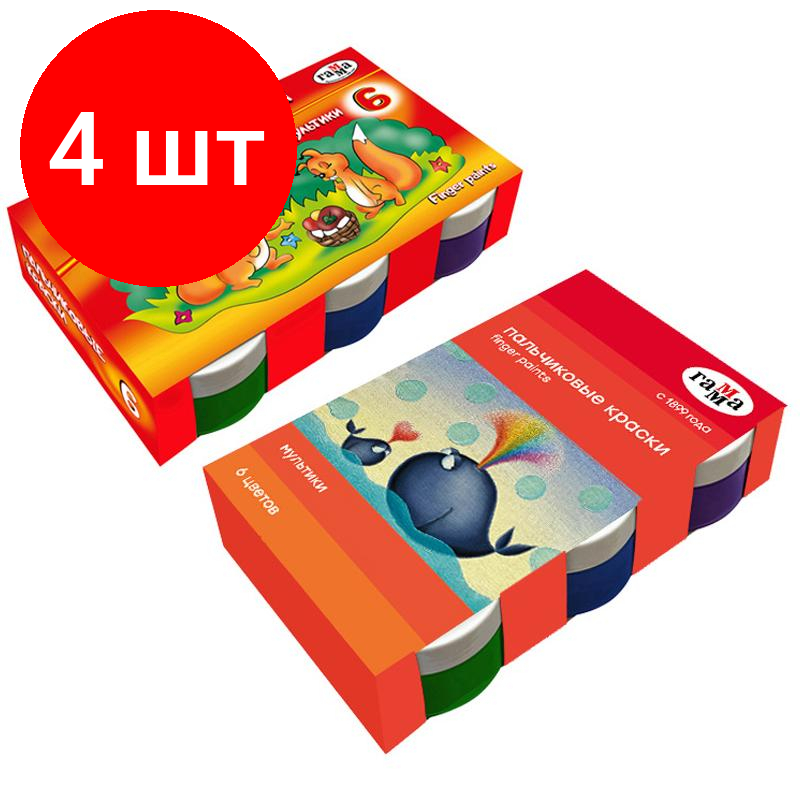 Комплект 4 наб., Краски пальчиковые Гамма Мультики классич.50мл х 6цв/наб карт.кор 180120213 информация: