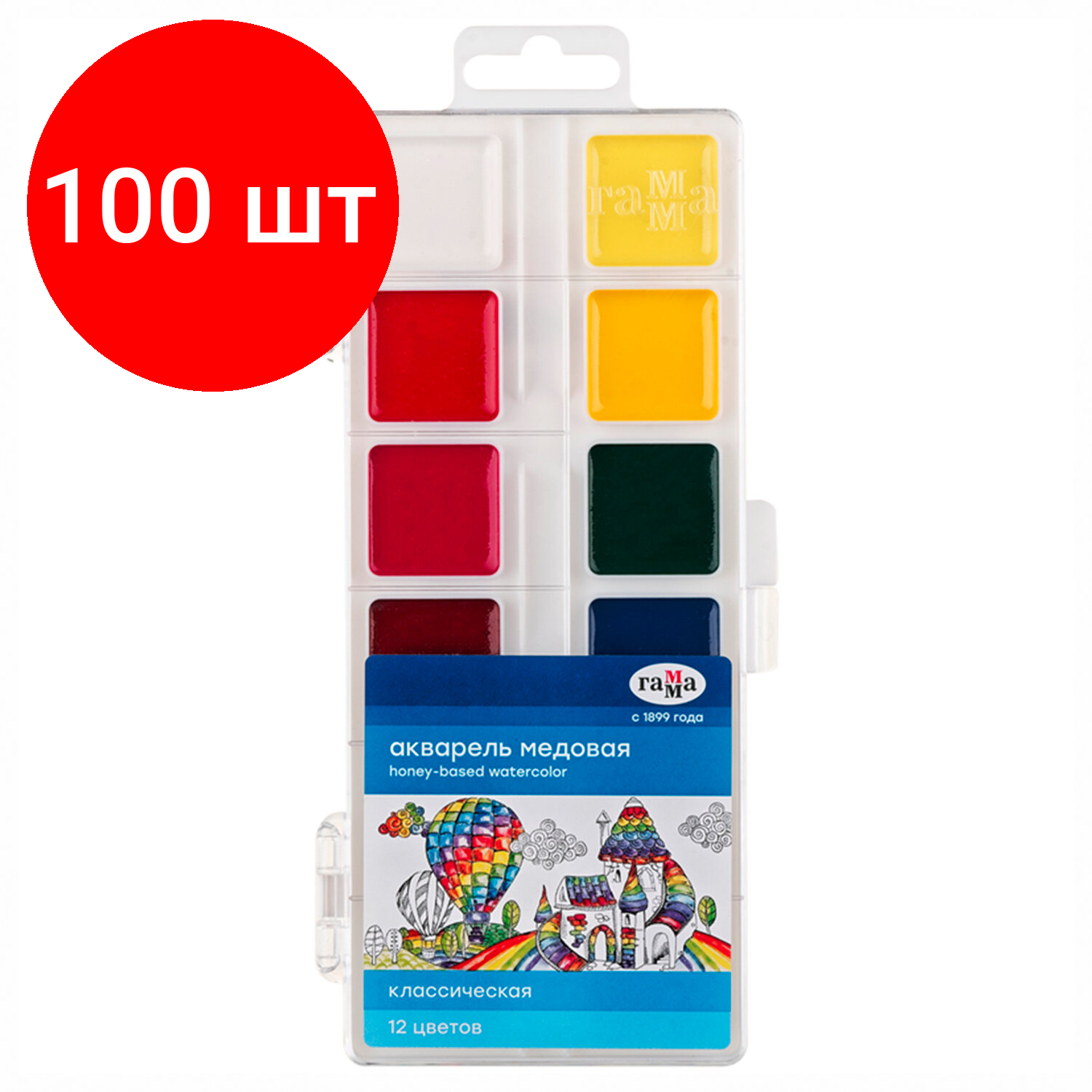 Комплект 100 шт, Краски акварельные гамма "Классическая", 12 цв., медовая, без кисти, пластиковый корпус, европодвес, 1009194 информация: