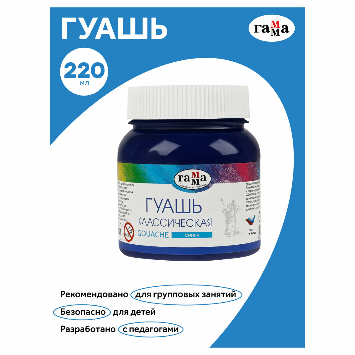 Гуашь банка 220мл Гамма"Классическая", Синяя (221066232/2) 9490606 . информация: