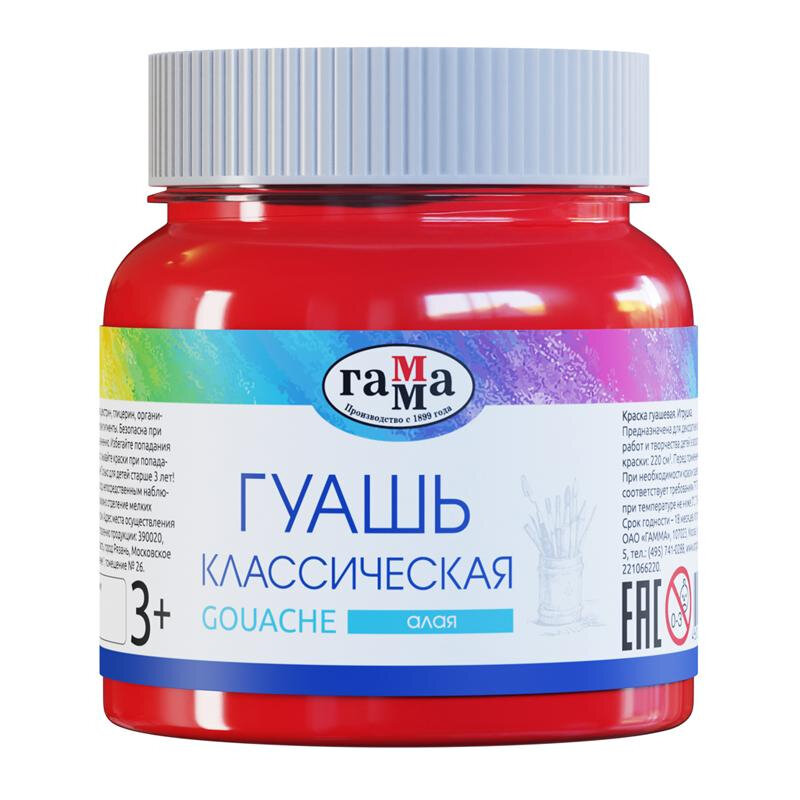 221066220 Гуашь Гамма "Классическая", алая, 220мл