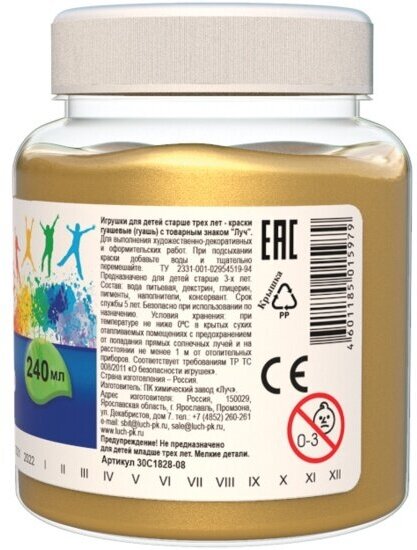 Гуашь Луч художественная 1 шт. "Классика", 240 мл, золотая, 30С 1828-08 информация: