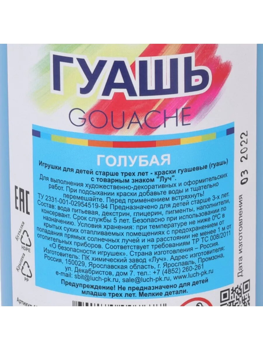 Гуашь "Луч" Классика цвета, 240 мл, синяя светлая