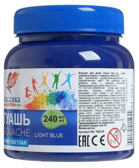 Гуашь "Луч" Классика цвета, 240 мл, синяя светлая информация: