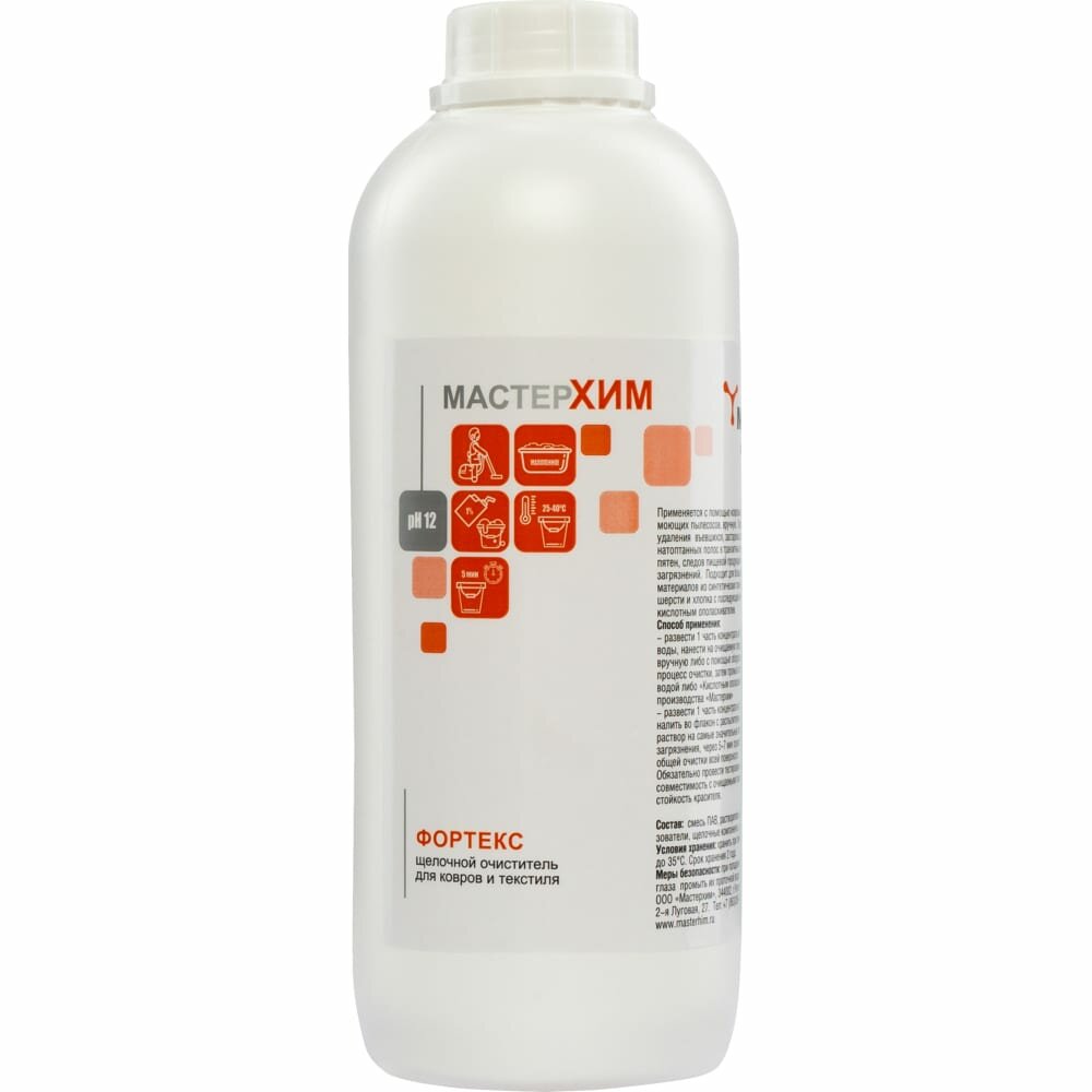 МастерХим Концентрат щелочной для очистки сложных загрязнений на коврах и мебели фортекс 044ЩБп1 информация: