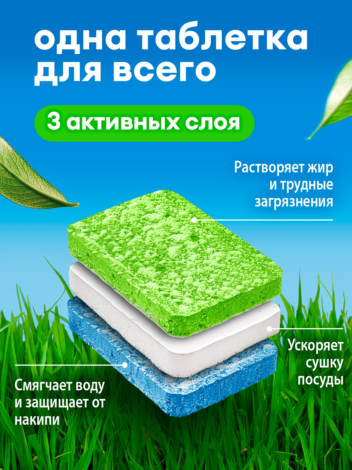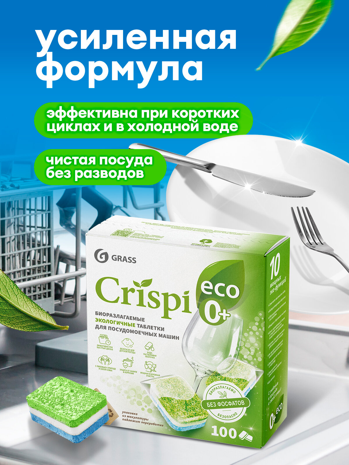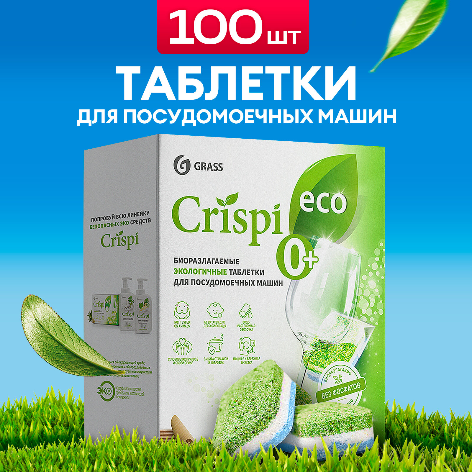 Таблетки для посудомойки Grass Crispi, 100 штук бесфосфатные, биоразлагаемые, экологичные таблетки для посудомойки, моющее средство для посуды информация: