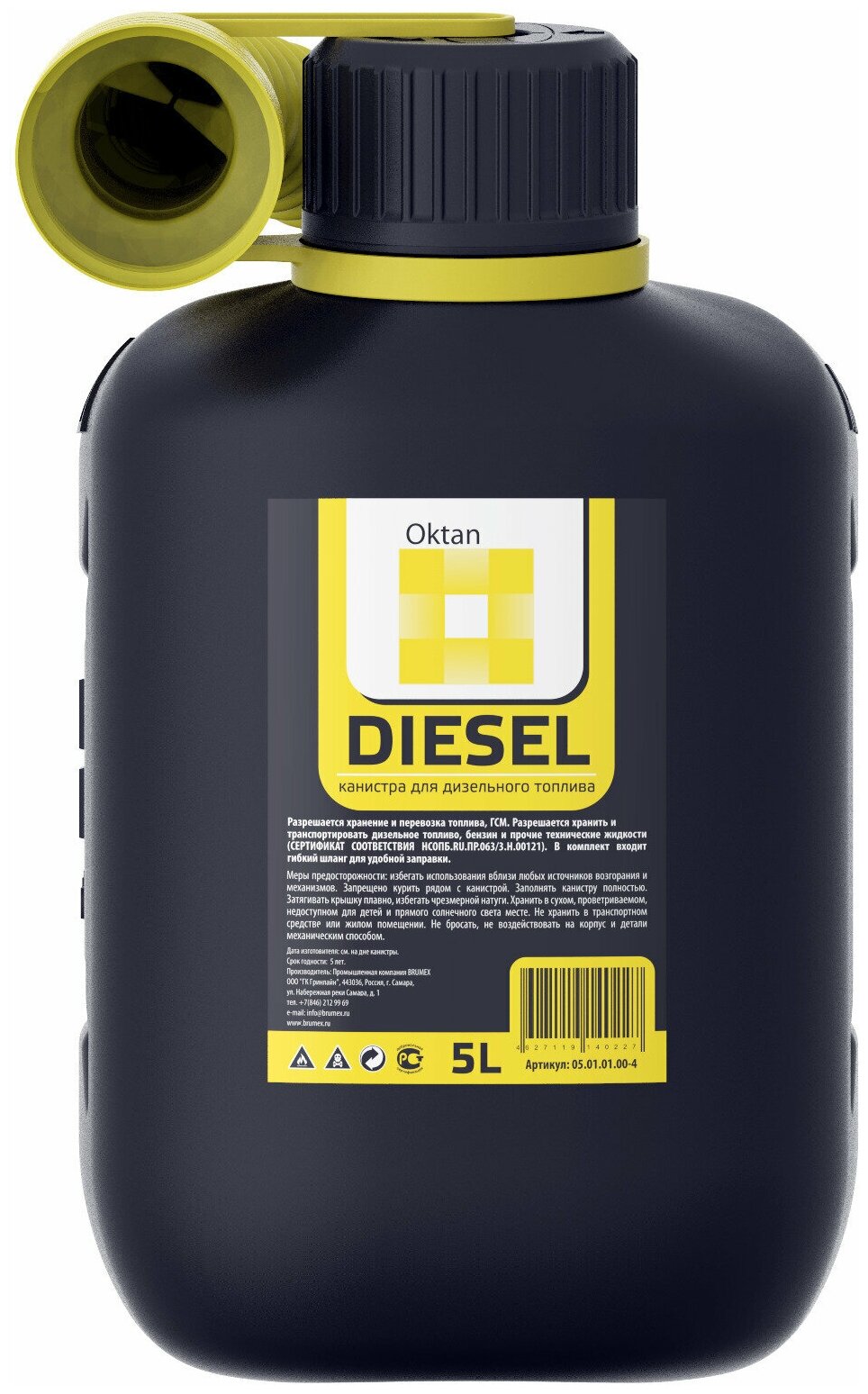 10 цен на Канистра ГСМ DIESEL, черная с желтым шлангом, 5 л, Oktan