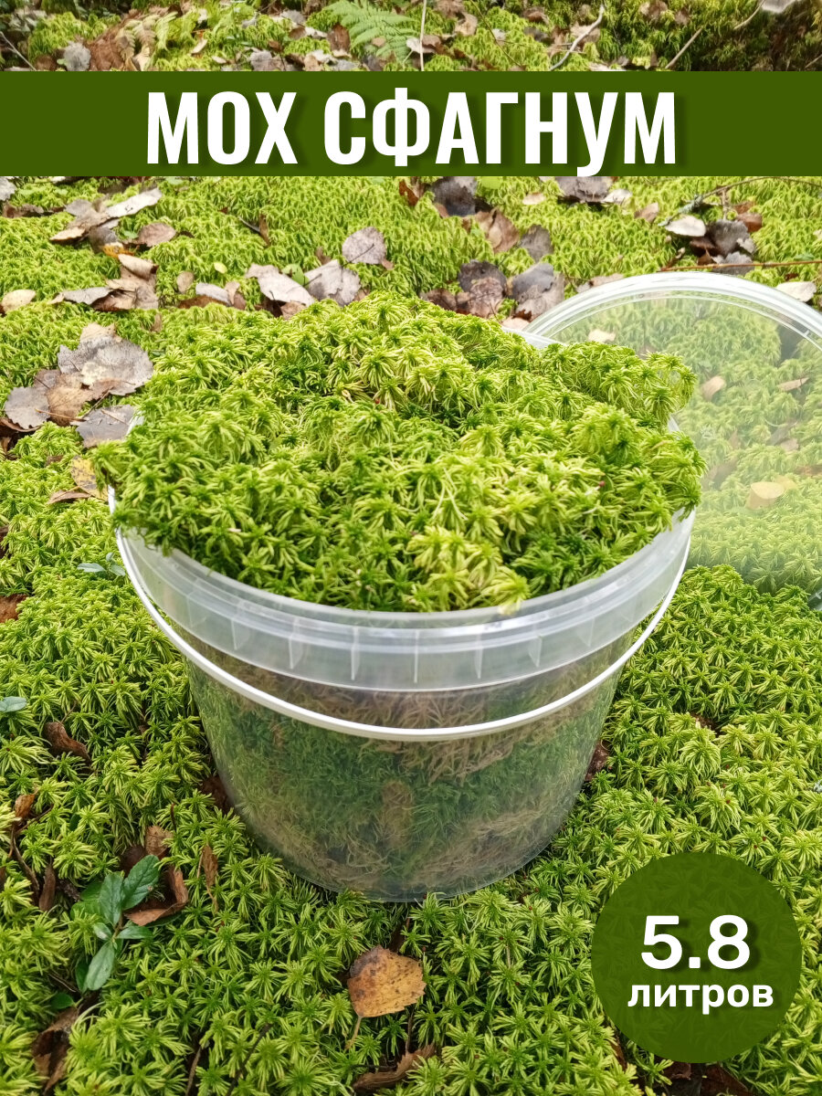 Живой мох сфагнум для орхидей и улиток "Зелёная лавка", объём 5,8 литра информация:
