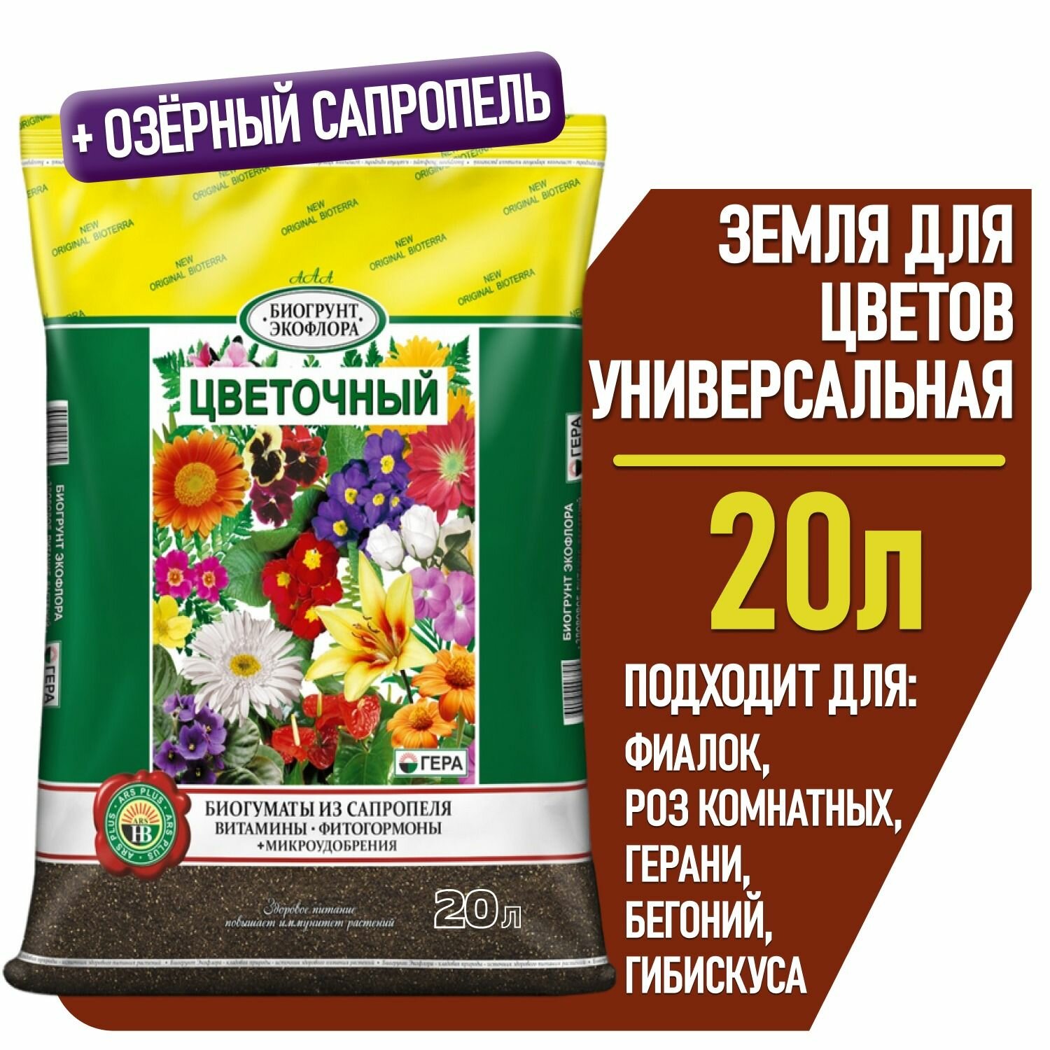 10 цен на Земля для цветов комнатных универсальная гера, грунт для растений, петуний и бегоний, роз и фиалок, герани и гибискуса, 20 л.