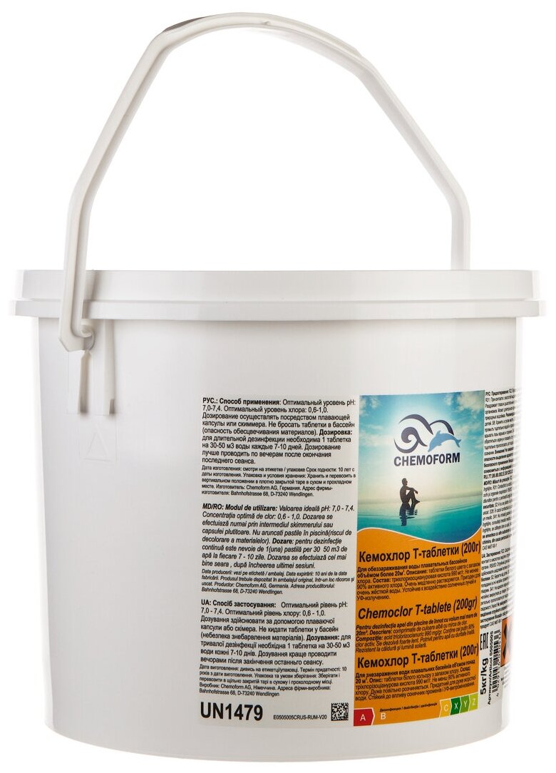 Таблетки хлора Chemoform для быстрой и продолжительной очистки воды в бассейне. медленный хлор обеспечивают антибактериальную и антигрибковую защиту 200 гр 5 кг
