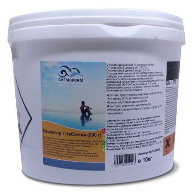 Средство для дезинфекции воды Chemoform Кемохлор Т 10 кг табл. 200 г 0505010 14 423 ₽