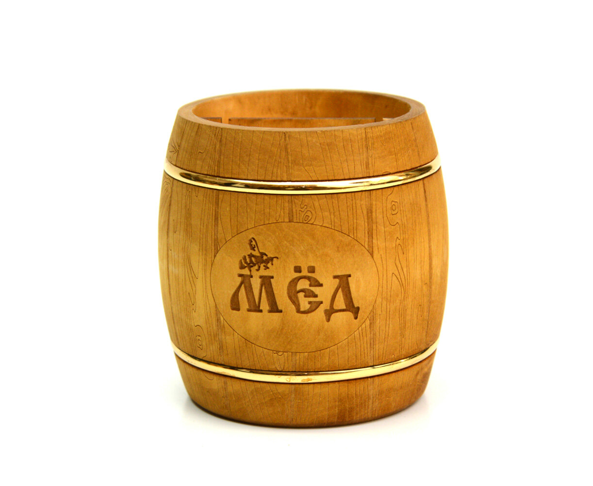 Бочонок деревянный из липы для меда темный 1,0 кг информация: