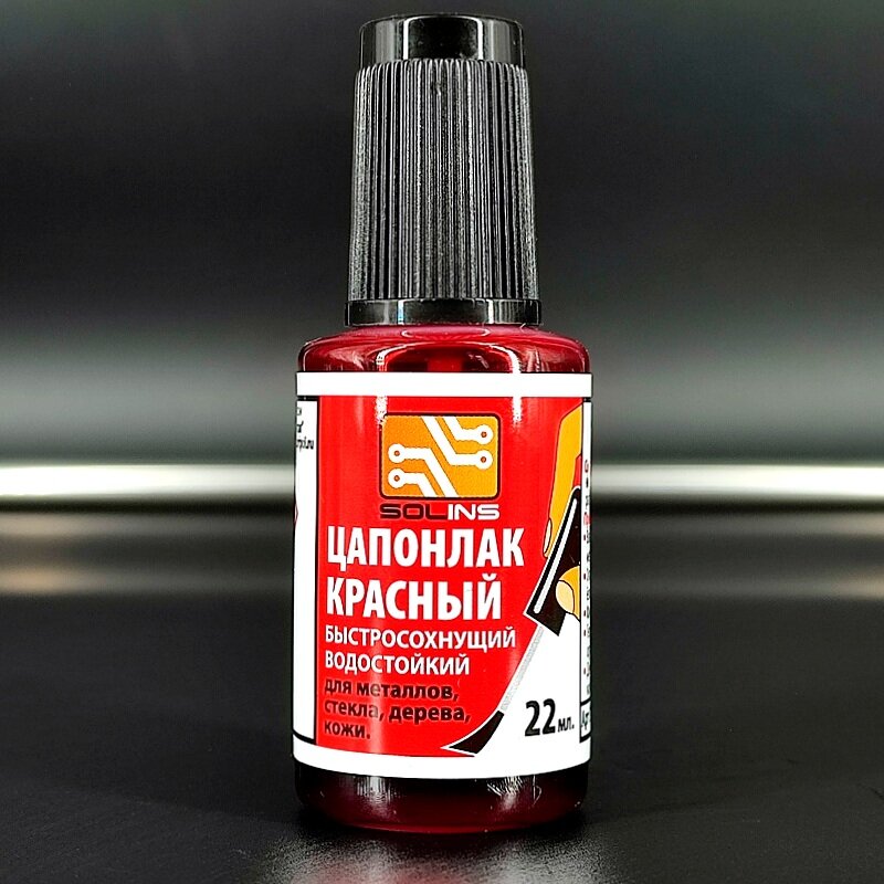 Цапон лак Solins быстросохнущий водостойкий, защитный для металла, стекла (ламп), дерева (древесины), кожи, печатных плат, цапонлак защита от коррозии для наружных и внутренних работ, красный 22 мл