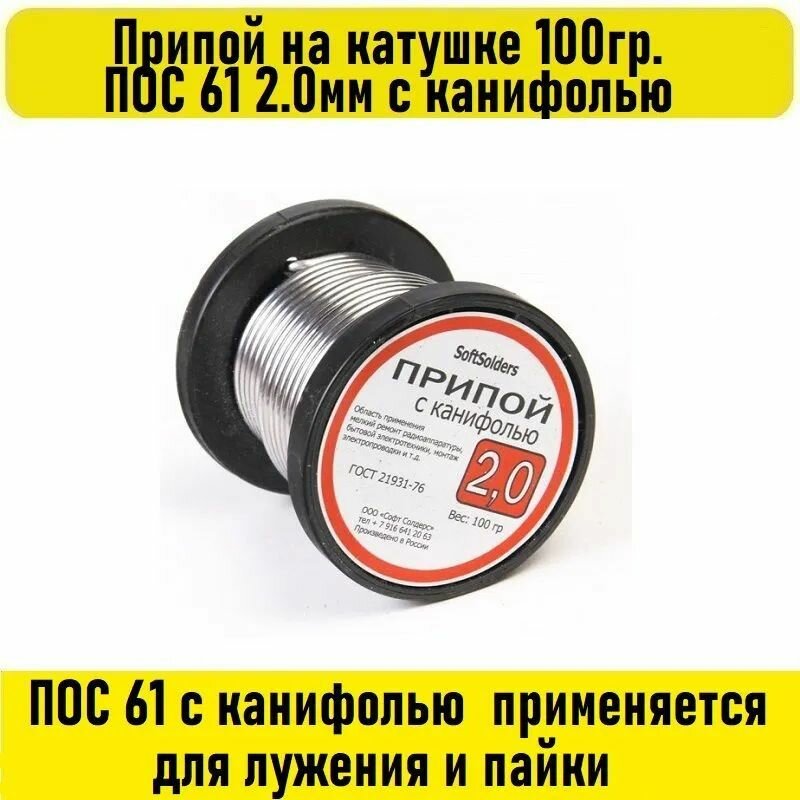 10 цен на Припой пос-61 с канифолью (100 г), SoftSolders диаметр 2мм
