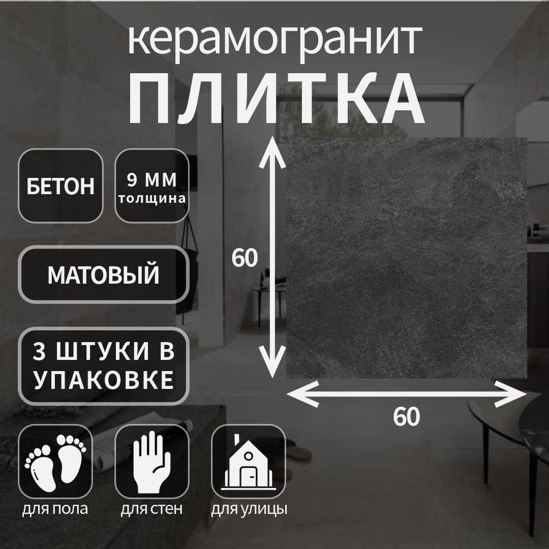 Отзывы на Керамогранит Kerama Marazzi Про Стоун, черный, матовый, 60x60x0,9