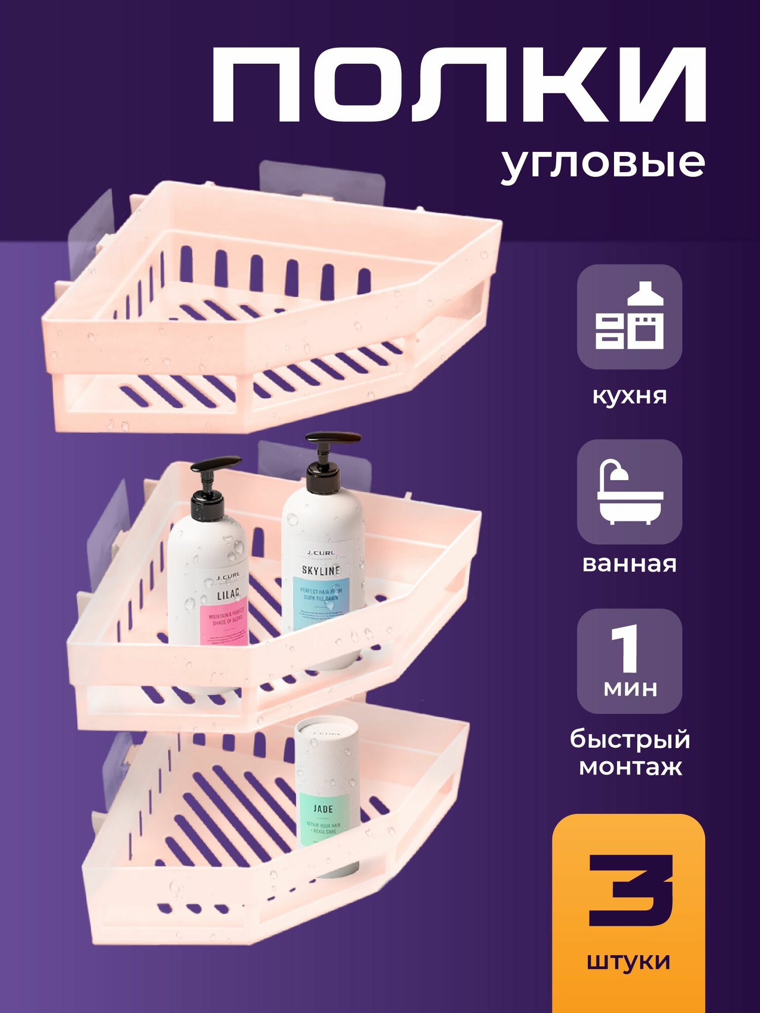 10 цен на Полка для ванной комнаты угловая Birdhouse, без сверления, на липучках, розовая, 3 шт